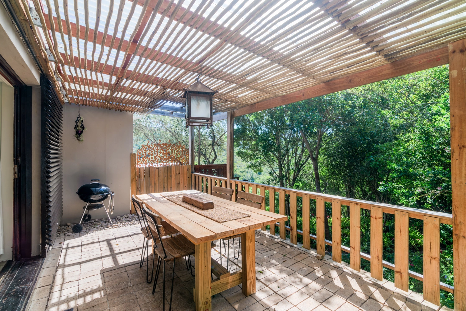 Treebia Self-catering apartments, a suburban forest hideaway set on the slopes overlooking the Klein Piesang River valley greenbelt area with abundant bird life and regular sighting of the famous Knysna Loerie and local Vervet monkeys.